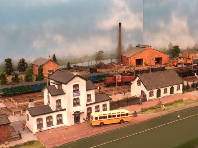 Dit is een baan in H0-schaal, die al op veel tentoonstellingen heeft gestaan, zowel in binnen- als buitenland. Het model geeft de situatie rondom het station in 1960 weer.